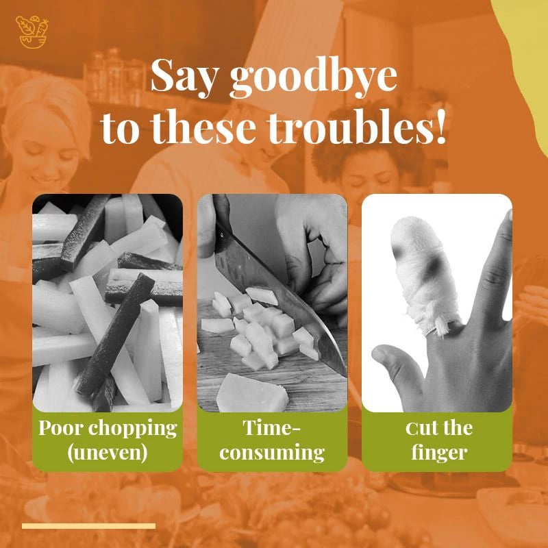 • Quickly Prepare Vegetables  No need to cut frequently with a knife, just gently press the chopper, and vegetables can be diced or sliced. The diced vegetables are neat and square, which is more beautiful than hand-cutting.