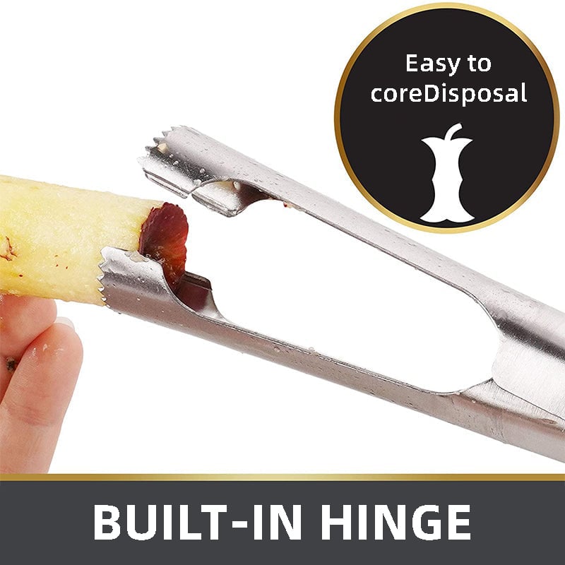 The corer has a lever that can be easily opened when handling cores that are not needed. After use, it can be washed by hand with a soapy cloth or in the dishwasher.