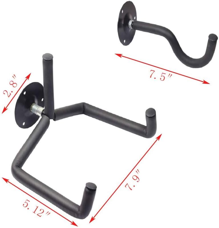 Extended metal design on the back of the hook to have a safe space between guitar and wall, avoiding crashed when taking on and off.