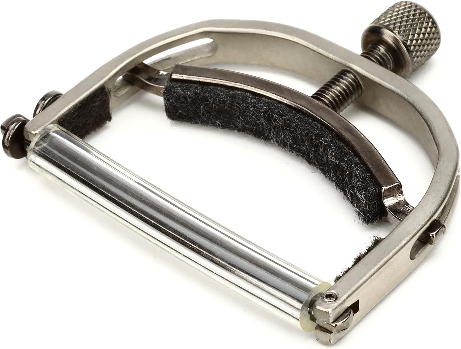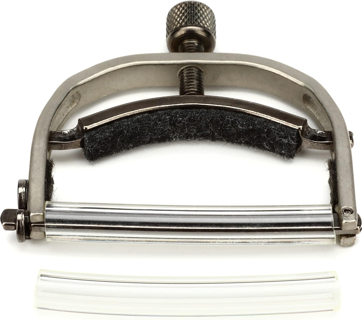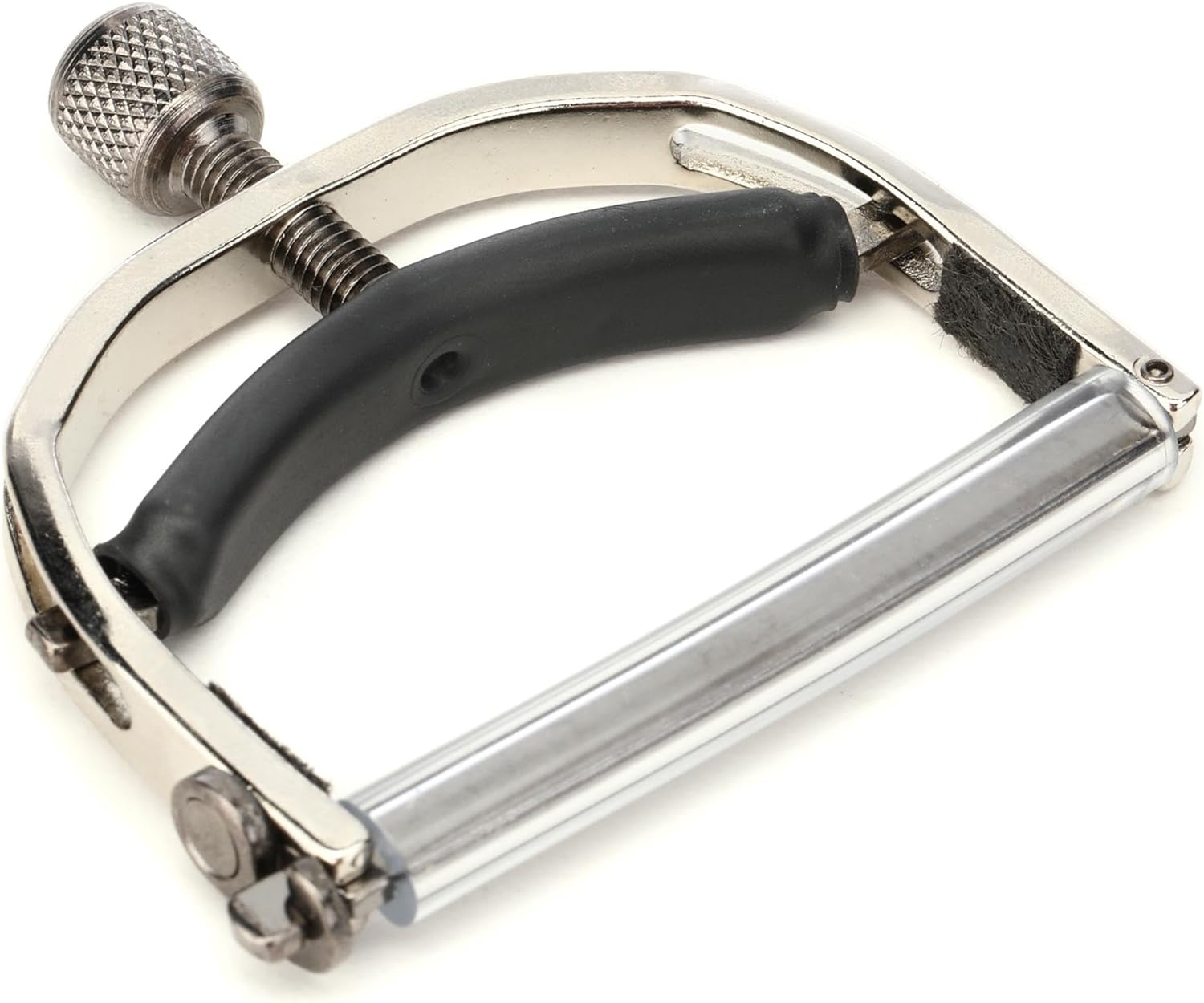 The perfect solution to keep your guitar in tune! Traditional capos tend to throw off the tuning of your guitar, but this innovative design solves that problem. With a tone bar constructed with a radius, it applies only the absolute minimum amount of string pressure required to produce a clean note