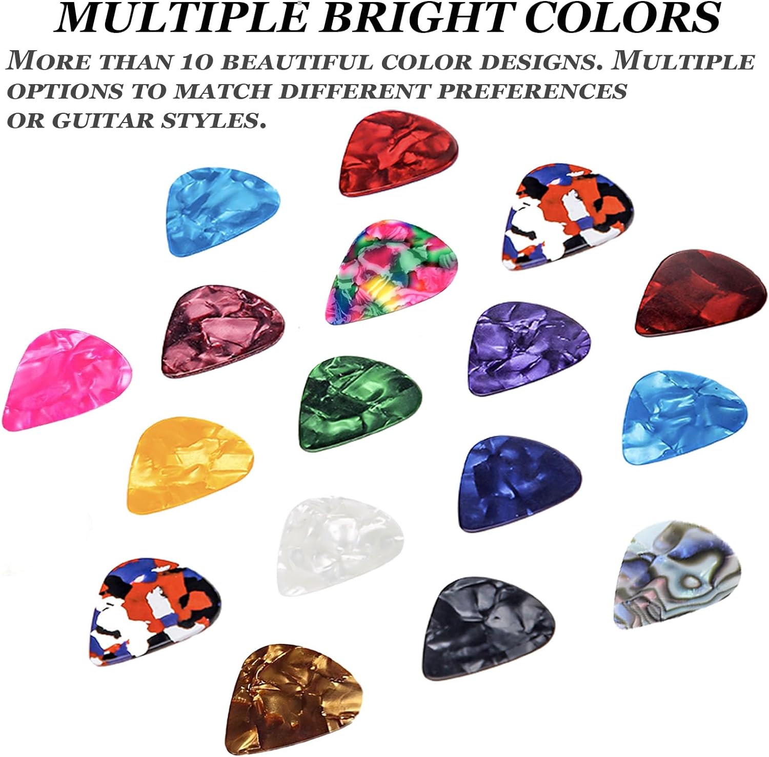 - Multiple Bright Colors: This is a great collection of guitar picks with picks in various colors and widths. More than 10 beautiful color designs. Multiple options to match different preferences or guitar styles.