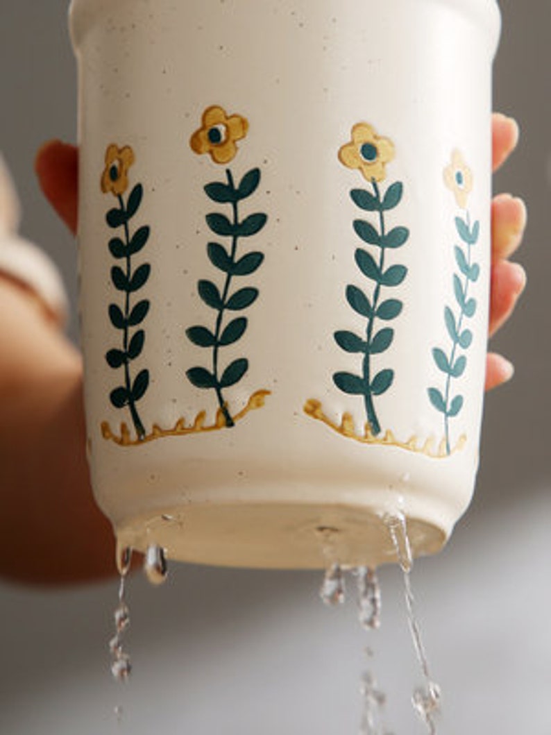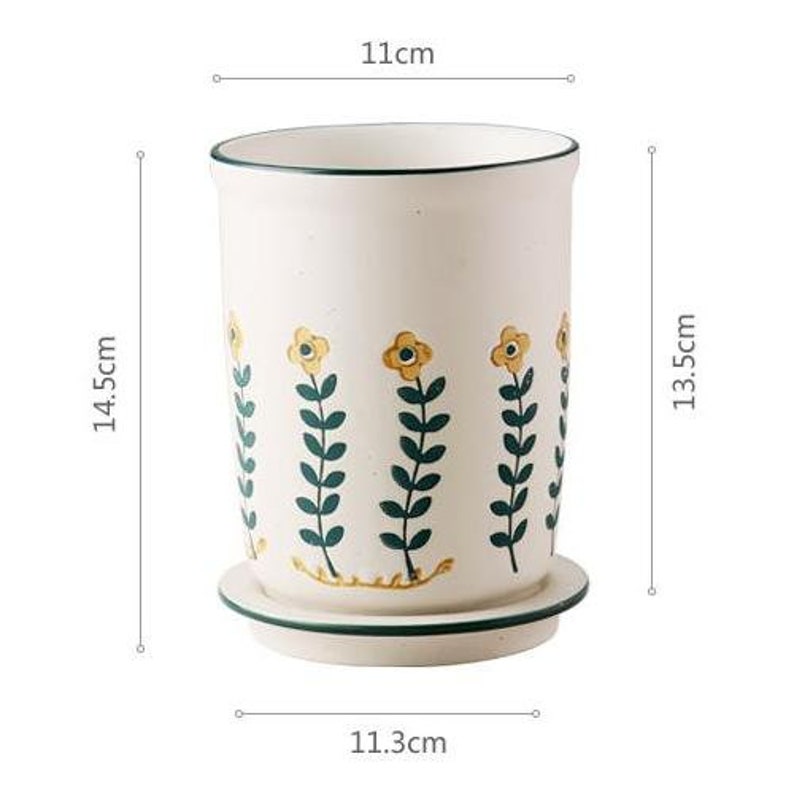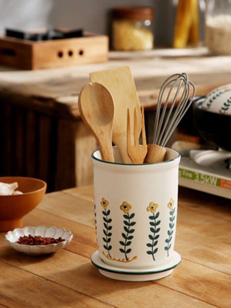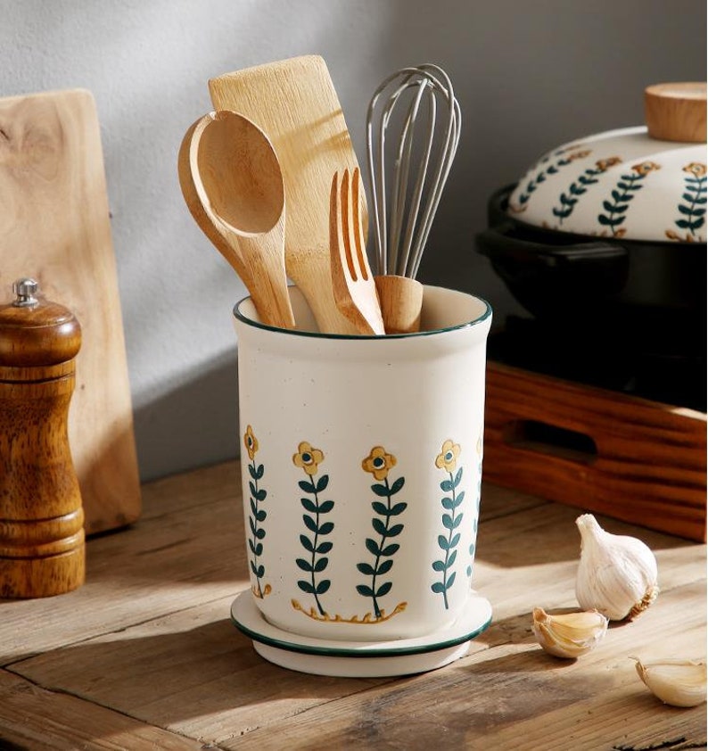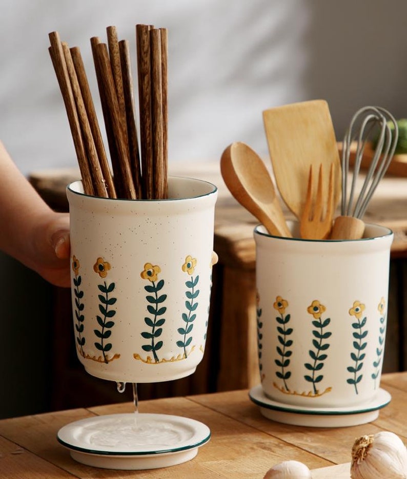 • Hand-Painted Small Yellow Flower Handmade Ceramic Utensil Holder | Utensil Holder Ceramic