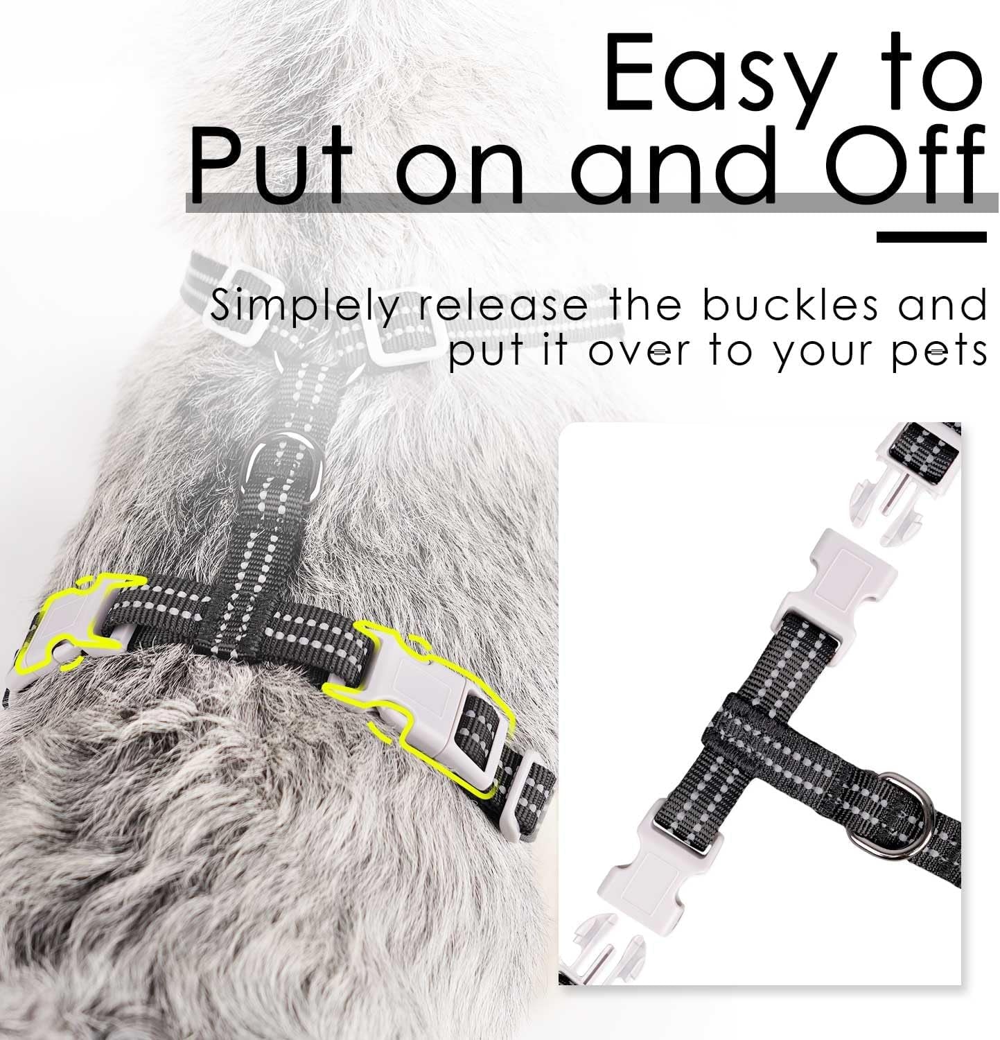 • EASY TO PUT ON AND OFF: The M size medium dog harness first adjusts the sliding straps on the neck and then fits it into the pet's head. Then use two quick release buckles to buckle up the chest, making it easy and convenient to put on and off.