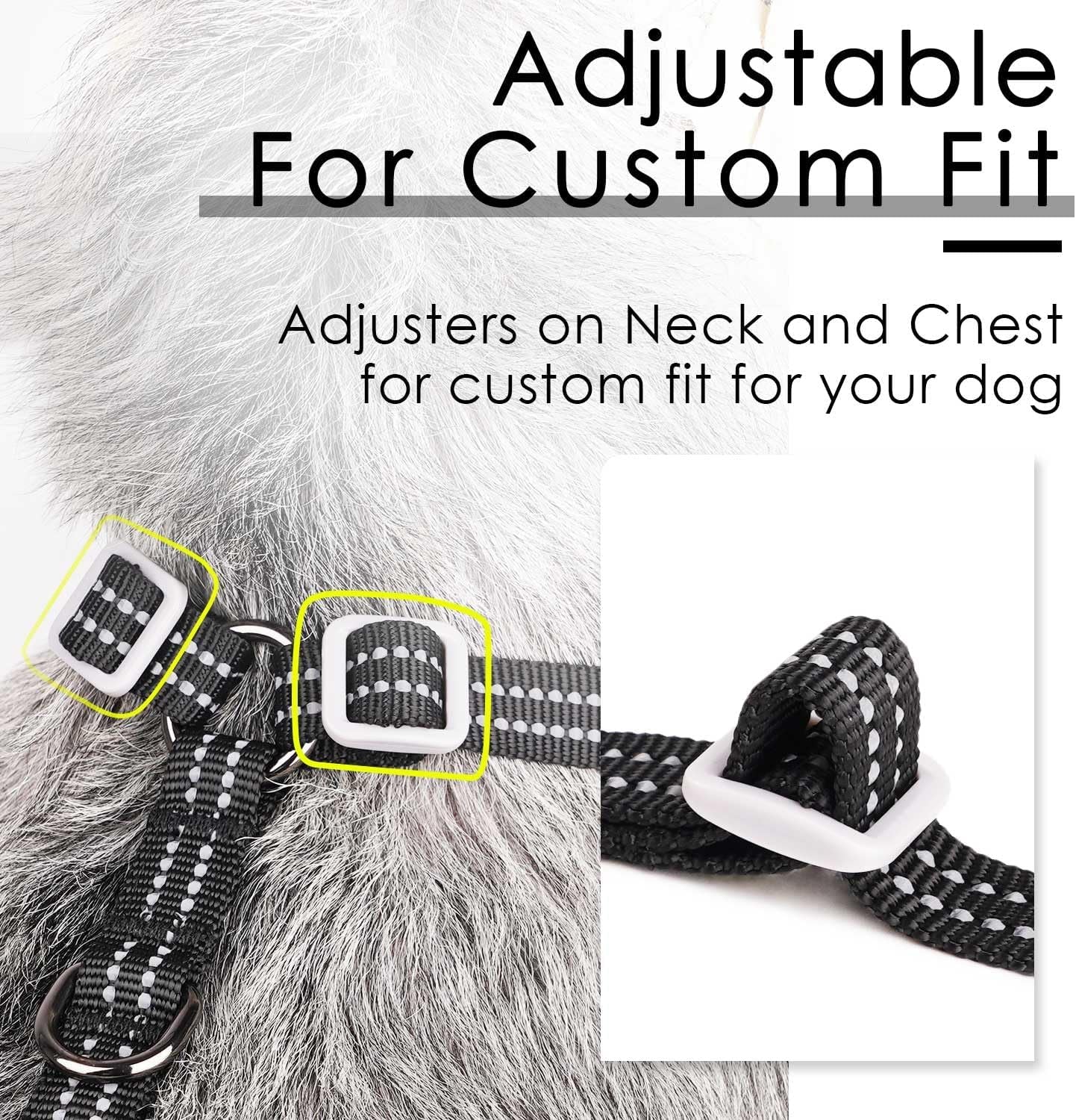 • ADJUSTABLE HARNESS: The Thinkpet's pet vest harness has 4 adjustable sliding straps, and both the neck and chest straps can be used to adjust the tightness, providing your pet with a suitable fit without worrying about falling off or choking. ▲ Please ensure there is space for two fingers between the harness and the pet's body.